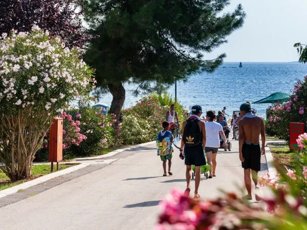 Camping usytuowany jest bezpośrednio przy żwirowej plaży o długości 800 m z łagodnym zejściem do morza. Podążając wzdłuż kamienistej plaży, dotrzecie do portu, z którego codziennie wypływają luksusowe jachty. Na dzieci i dorosłych czeka tu kompleks z trzema basenami ze zjeżdżalniami i bezpłatnymi leżakami, a także brodzik z parkiem wodnym. Wieczorem, przy basenie, odbywają się pokazy przy muzyce. Nasze namioty typu Lodge położone są w pobliżu jednego z basenów z brodzikiem dla dzieci i parkiem wodnym.