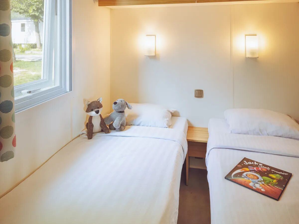 Domek ten posiada 3 sypialnie, w tym główną z dużym, podwójnym łóżkiem o wymiarach 2,00 x 1,6 m. W drugiej sypialni znajdują się 2 łóżka pojedyncze. Jedno z łóżek można wsunąć pod drugie, dzięki czemu będzie tu wystarczająco dużo miejsca na wstawienie np. łóżeczka turystycznego dla dziecka. W trzeciej sypialni znajdują się 2 łóżka pojedyncze lub łóżko piętrowe. W salonie jest również miejsce do spania dla 1 osoby. Wszystkie sypialnie są wyposażone w moskitiery. Dodatkowo w domku znajduje się jedna barierka do łóżka.