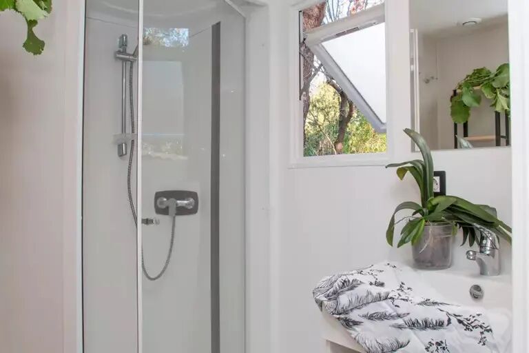 Kuchnia jest standardowo wyposażona w wysoką lodówkę z oddzielnym zamrażalnikiem, 4-palnikową kuchenkę gazową, kuchenkę mikrofalową, piekarnik, ekspres do kawy Nespresso, czajnik, wyposażenie kuchenne i zmywarkę. Jedna łazienka jest połączona z dwuosobową sypialnią i wyposażona w umywalkę oraz przestronną kabinę prysznicową. Druga łazienka również posiada umywalkę i kabinę prysznicową. Dla dodatkowego komfortu toalety są oddzielne.
