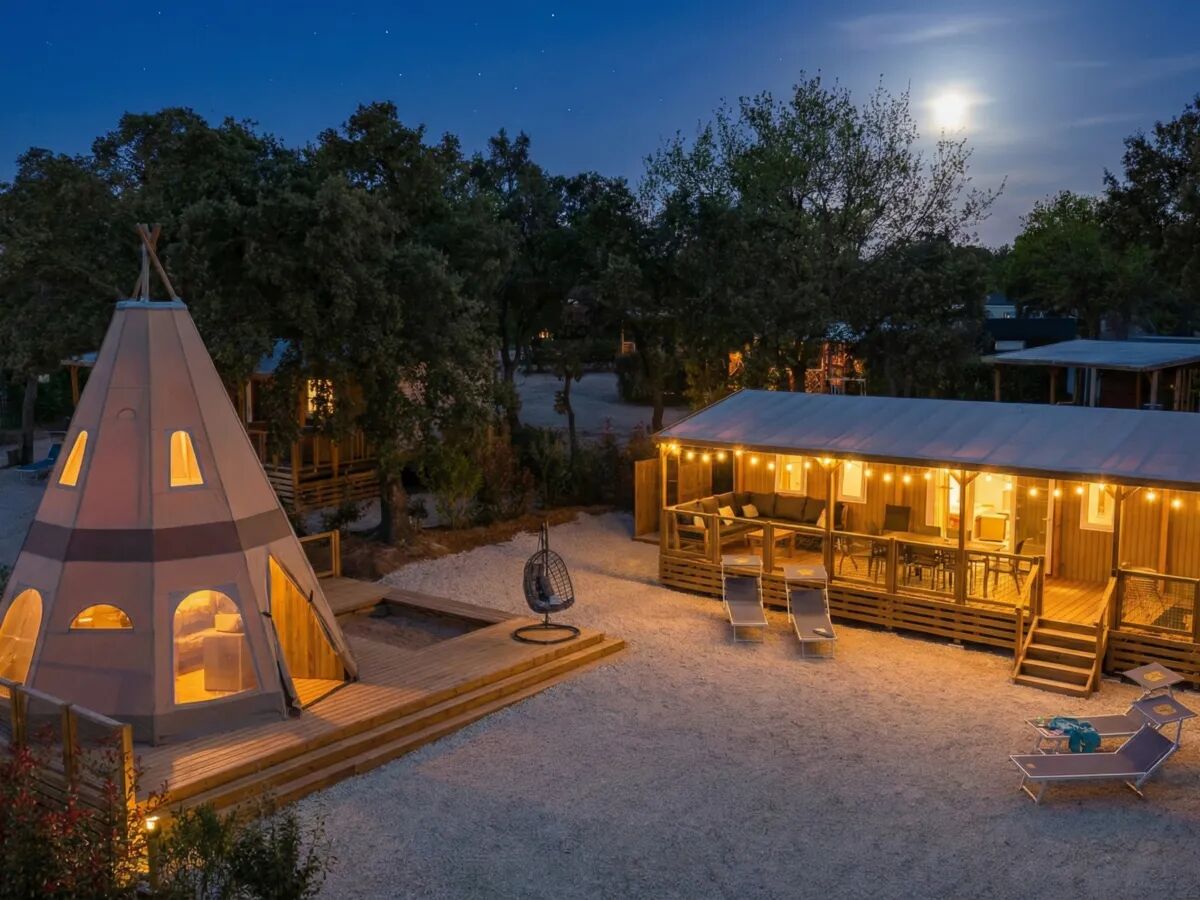 AC SAT-TV Taras Zamykany taras Sofa wypoczynkowa Namiot tipi Zmywarka Sprzątanie końcowe Łóżka pościelone Kuchnia zewnętrzna 3 łazienki Premium Zone Nowy WiFi Nastrojowe oświetlenie na tarasiePrzedstawiamy najnowszy, najbardziej przestronny i luksusowy mobile home w naszej ofercie! Supreme Deluxe Family Lounge sprawi, że wakacje na campingu nabiorą całkiem nowego wymiaru. To wyjątkowe zakwaterowanie pomieści aż 12 osób. Mobile home oferuje 4 sypialnie i 2 łazienki, a tuż obok znajduje się przestronne Tipi, które zapewnia dodatkowe 4 miejsca do spania oraz kolejną łazienkę. Na dużym tarasie mobile home’u czeka kuchnia na świeżym powietrzu, idealna do wspólnego gotowania, a w salonie można odprężyć się na wygodnej, obszernej sofie. Wyjątkowość tego zakwaterowania podkreśla namiot Tipi, wyposażony w taras z dużą moskitierą. Co więcej, w cenie zakwaterowania zapewniamy WiFi, pościel, ręczniki kąpielowe oraz sprzątanie końcowe.